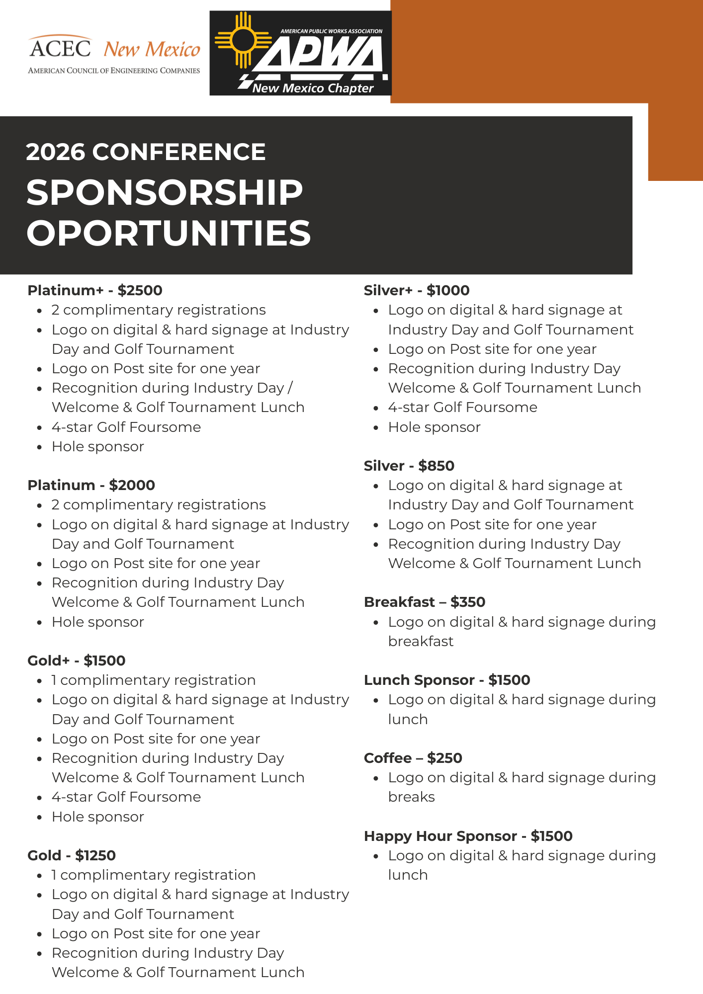 ACEC NM / APWA Conference & Golf TournamentMay 28–29, 2026 | Paradise Hills Golf Course